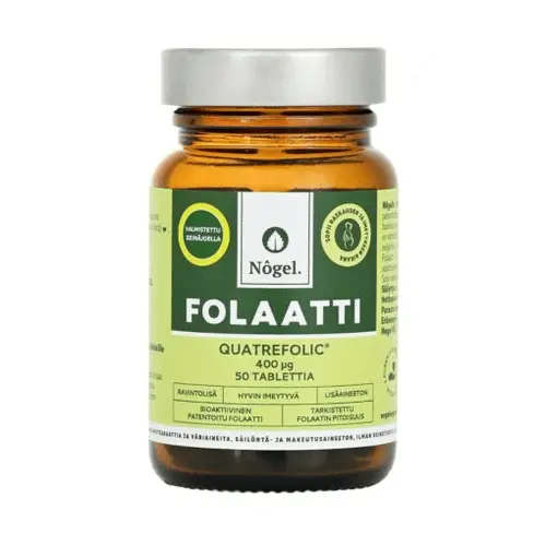 В пищевой добавке Nôgel фолат находится в биоактивной запатентованной форме. У некоторых людей усваивание искусственной фолиевой кислоты ограничено, в то время как натуральный активный фолат легко усваивается организмом. Запатентованный фолат Quatrefolic® — это фолат четвертого поколения, гарантирующий наилучшее усвоение.